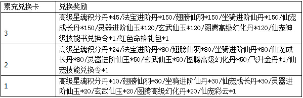 活动期间,40级以上玩家每天登陆游戏可获得额外奖励:仙宠精魂.紫*8、仙宠口粮*8、绑定铜钱卡*8、飞仙令牌.绿*5、神秘商店令牌*1。