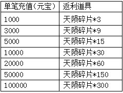 温馨提示:单笔充值奖励可重复领取,不设上限,奖励物品均为绑定,以信函方式发放。