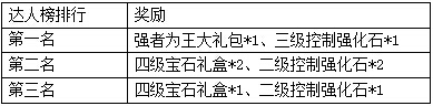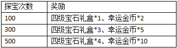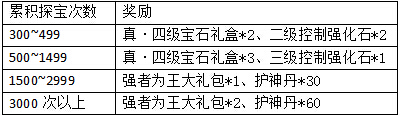 活动规则:活动期间,每天累计寻宝次数达到150次且在寻宝达人榜排行前3名玩家可获得额外系统奖励。