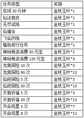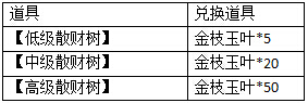 1.活动期间,玩家完成以下指定游戏内容可获得金枝玉叶,不同数量金枝玉叶可兑换不同级别的散财树;